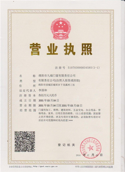 綿陽市九福門窗有限責任公司